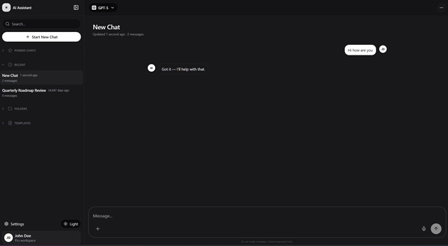 Chatbot with different models in a modern ChatGPT - styled interface.