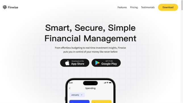 Landing page for the Finwise App.