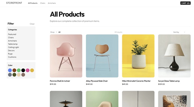 A modern online store for chairs, tables, and other furniture.