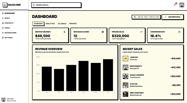 An enterprise grade CRM dashboard.