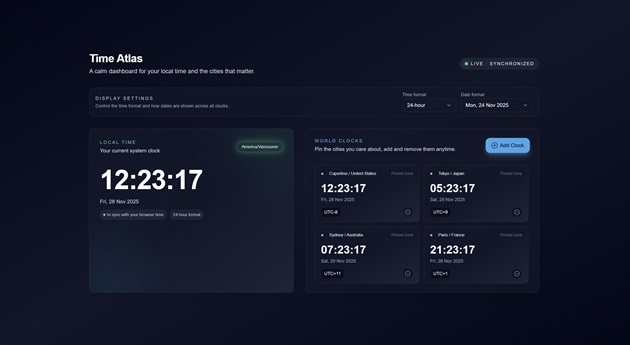 A dashboard that shows time in different parts of the world.